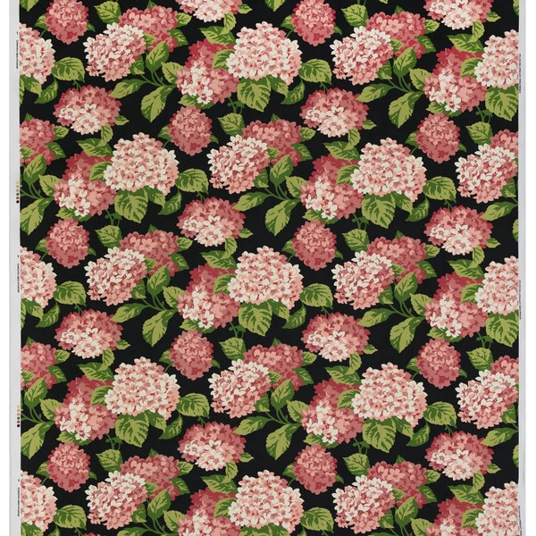 Magnolia Home Summerwind Frolic is an indoor-only printed cotton upholstery fabric. Featuring a bright and colorful pattern of pink hydrangeas on a dark background, this gorgeous fabric will bring a fun and joyful style to your home’s interior upholstery and accent pieces. Pair this upholstery fabric with coordinating fabrics in the Magnolia collection for a cohesive look throughout your home.