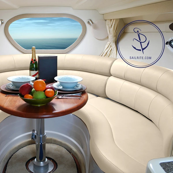 Morbern® Bayside Birch is a great upholstery vinyl that has some stretch, but not as much as a true 4-way stretch vinyl. It’s also not as stretch resistant as traditional construction vinyl. With Bayside, you have the versatility of some stretch and the ability to add construction stitching when needed. This mixture of properties makes Morbern Bayside a great choice for golf cart seats, jet boat seats, boat interior and exterior cushions and upholstery, dining room seat cushions, commercial/hospitality seating and so much more. Choose Bayside for projects that require a mix of both stretch and construction vinyl properties. Bayside can be constructed and sewn or stapled and pulled to remove wrinkles and provide shape.