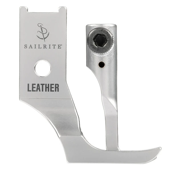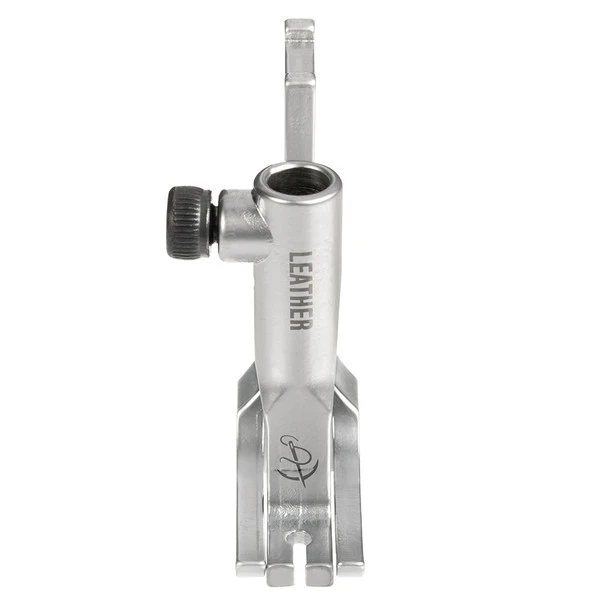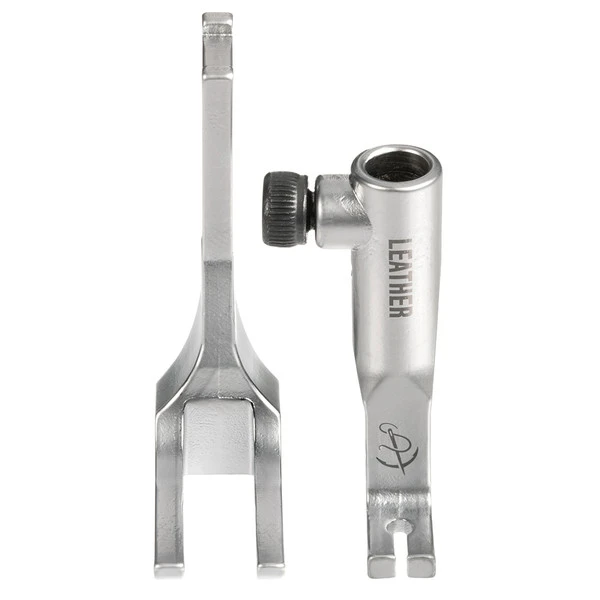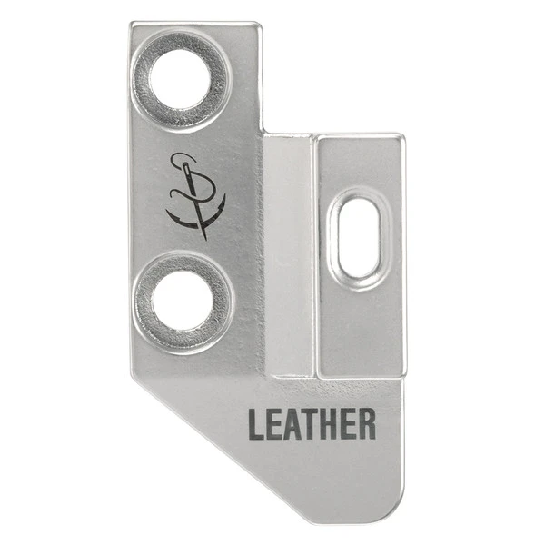 A must-have! This specialty presser foot and feed dog set is specifically designed for sewing leather and delicate materials. The outside presser foot has two toes and is designed without teeth so it won’t damage, scuff or mar leather or delicate materials. The inside presser foot has an open channel in front of the needle that allows you to see where the needle will pierce the material. It also makes it easier to follow a marked line on your application for straight and accurate sewing. Rounding out the set is the matching feed dog with a smooth surface that won’t scratch or mar the underside of your leather.
