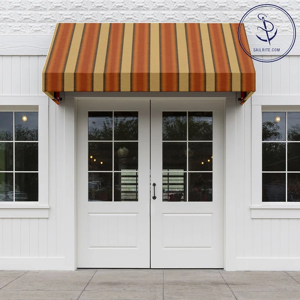 Sunbrella® Awning Stripe 4857-0000 Colonnade Redwood Fabric is a solution-dyed acrylic fabric from Glen Raven’s Sunbrella Awning Stripes collection. This fabric features orange-to-red ombre stripes nestled between neutral beige stripes, all flowing up the roll. The popularity of Sunbrella stems from its fantastic color options, high resistance to fading and long lifespan. Sunbrella is a soft, breathable, solution-dyed acrylic that is UV, water and mildew resistant and does not noticeably shrink or stretch. Sailrite is proud to carry the best in solution dyed acrylic outdoor fabric!